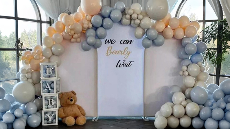 Arched Backdrop, We Can Bearly Wait Arch Backdrop, Arch Backdrop Stand, Arched Fabric Backdrop, Chiara Bear Theme, Bear Theme Shower